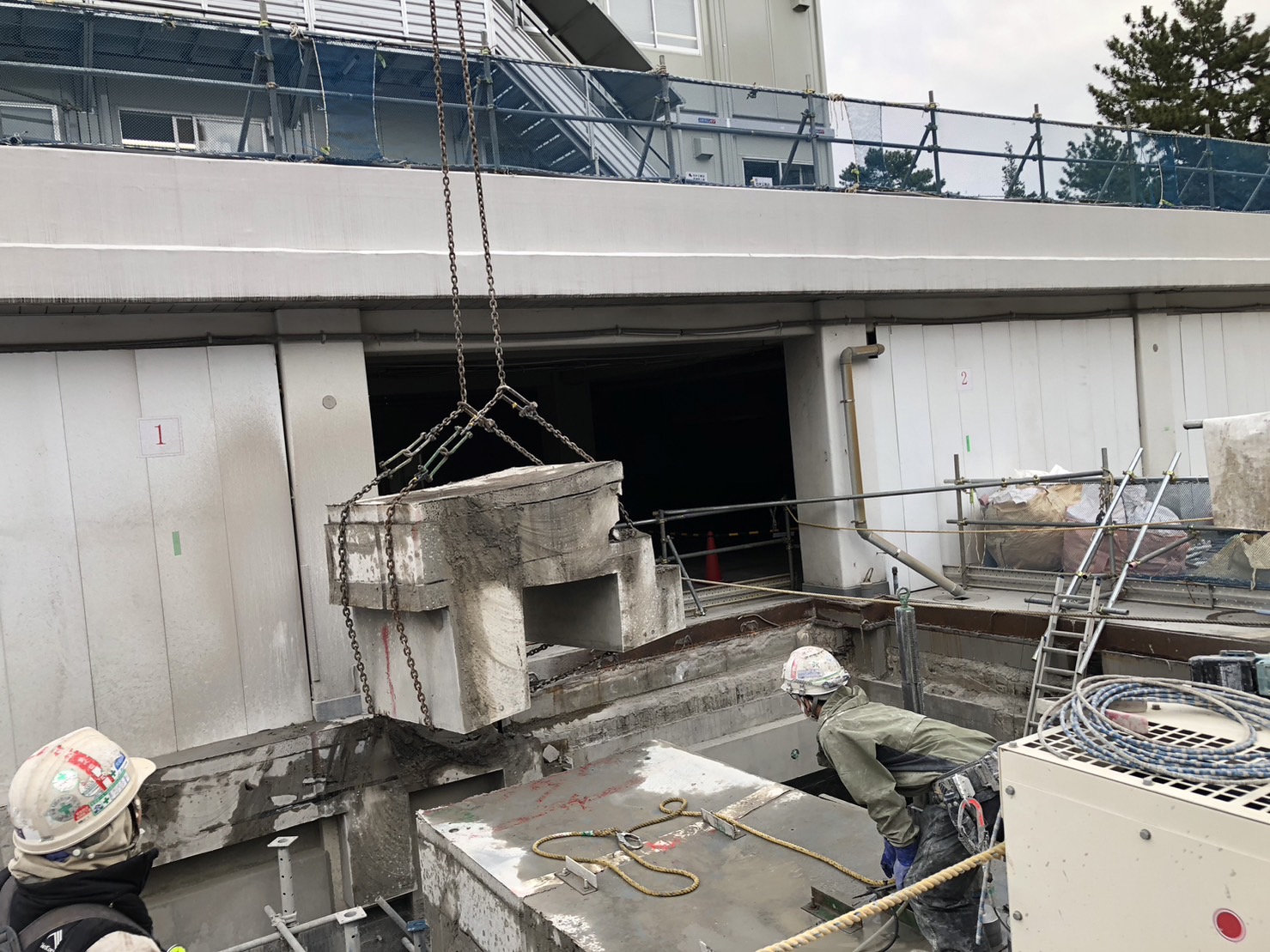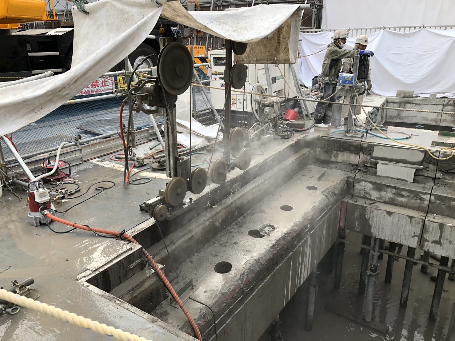 湯島にてダイヤモンドコア、ワイヤーソー切断工事を行いました※写真撮影の為、安全カバーや手摺は外れている場合があります。