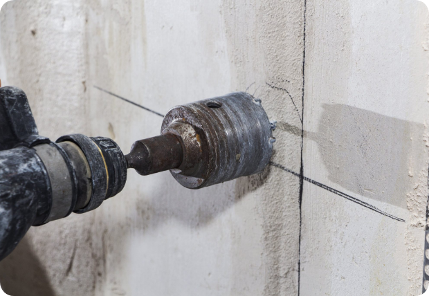 ダイヤモンドコアビットと呼ばれる工具を利用して、コンクリートや大理石・レンガ等の石材に穴を開ける作業を行います。